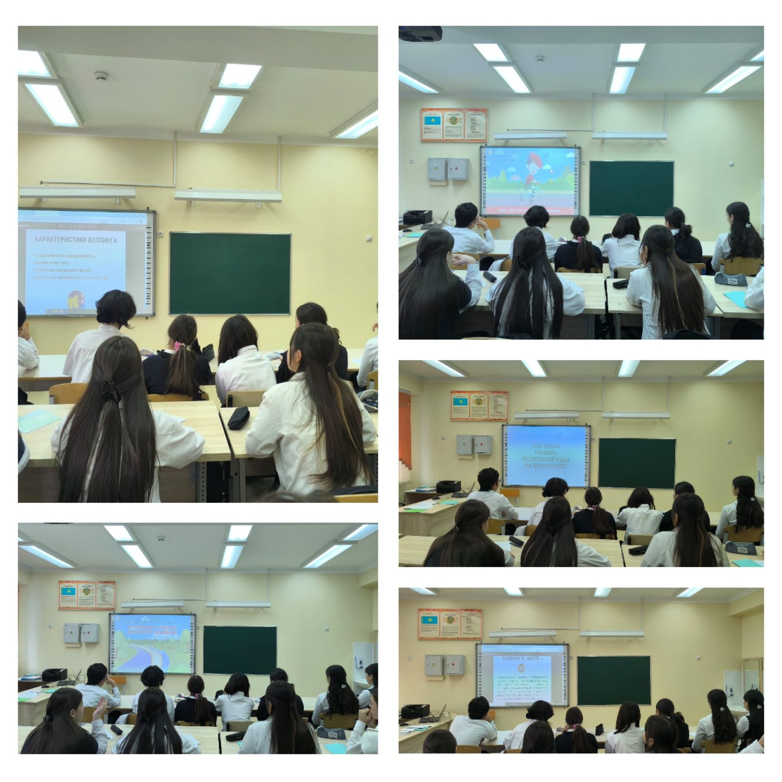 Сынып сағаттары барысында оқушыларға буллингтің алдын алу, өзара сыйластық, достық қарым-қатынас және психологиялық қауіпсіздік туралы түсіндірме жұмыстары жүргізілді.